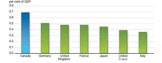 加拿大财政部长曾说过,保护儿童和青年的美好未来是加拿大的首要任务,而获得教育是确保此任务取得成功的基本工具。从经费的投入来看,这项任务的确是成功了:加拿大教育经费在GDP的比例远高于德国、英国、法国等发达国家。国家的大力支持也带来了教育发展的突飞猛进:在全球教育和技能报告中,加拿大和芬兰并列A级,在16个发达国家中排名第二。